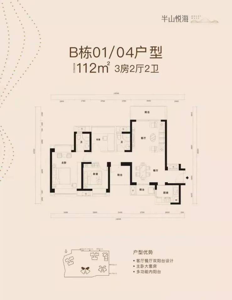 住宅户型:约82-112㎡3-4房