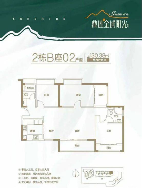 面积:86-130㎡3-4房