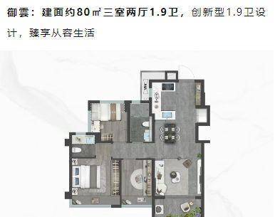 紧凑三房(约80㎡):创新的1.9卫设计增加了居住的便利性。