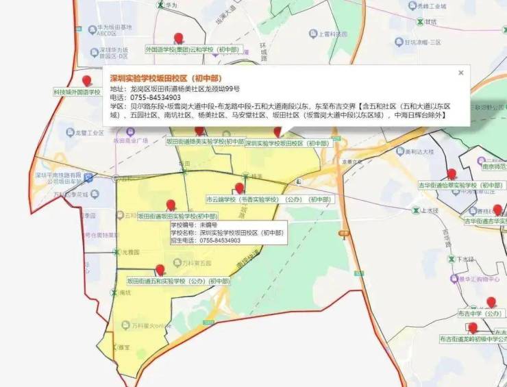小学学区划分在,科学高中五和实验学校,中学学区划分在坂田实验学校初中部,扬美实验学校初中部,深圳实验坂田校区初中部,科学高中五和实验学校初中部。