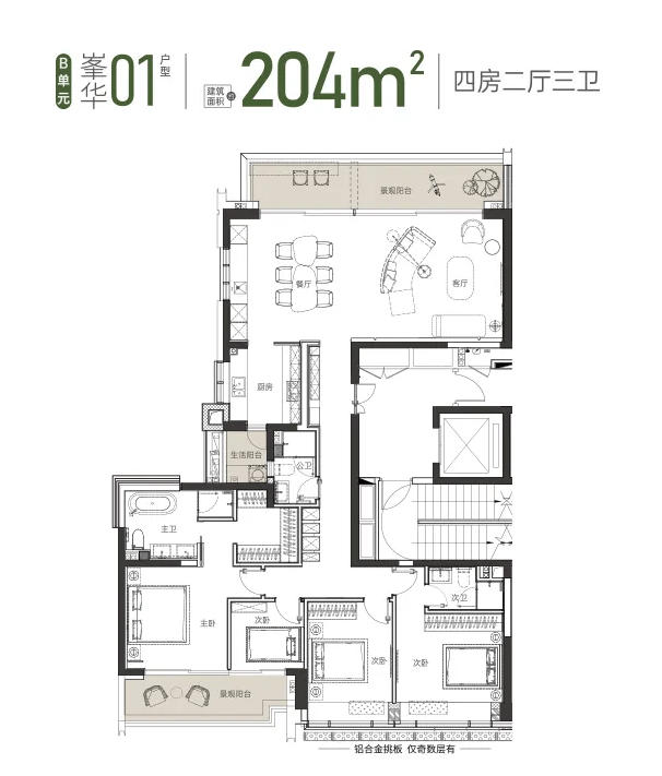 建面约 204 ㎡ 01户型 4房2厅2卫