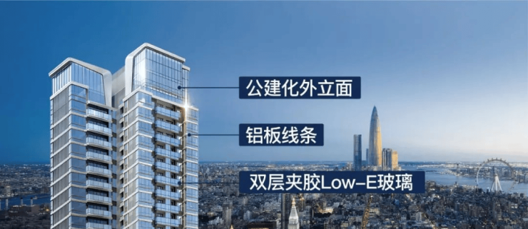 『城市峯面』:双层夹胶low-e玻璃+铝板线条外立面,配置一体化系统窗,同频豪居审美。