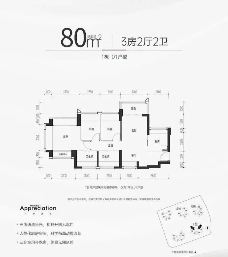 项目主推建面约72-105㎡的3-4房,产品基本在98%使用率,最高实用率甚至能突破100%,相较于新规前普遍75%左右的得房率,堪称是“王炸”级别的存在!