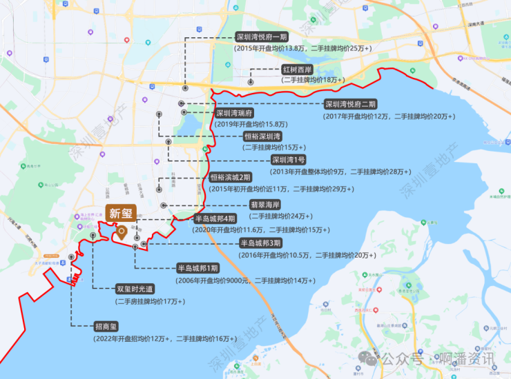 三栋摩天建筑群傲立云端:一期双塔以156.5米与171.1米之姿比肩云霞,二期250米地标犹如定海神针,共同勾勒出深圳湾最美天际线。这里不仅是深圳豪宅单价突破30万/㎡的价值巅峰,更是半亿级藏品引发顶豪争藏的传奇之地。