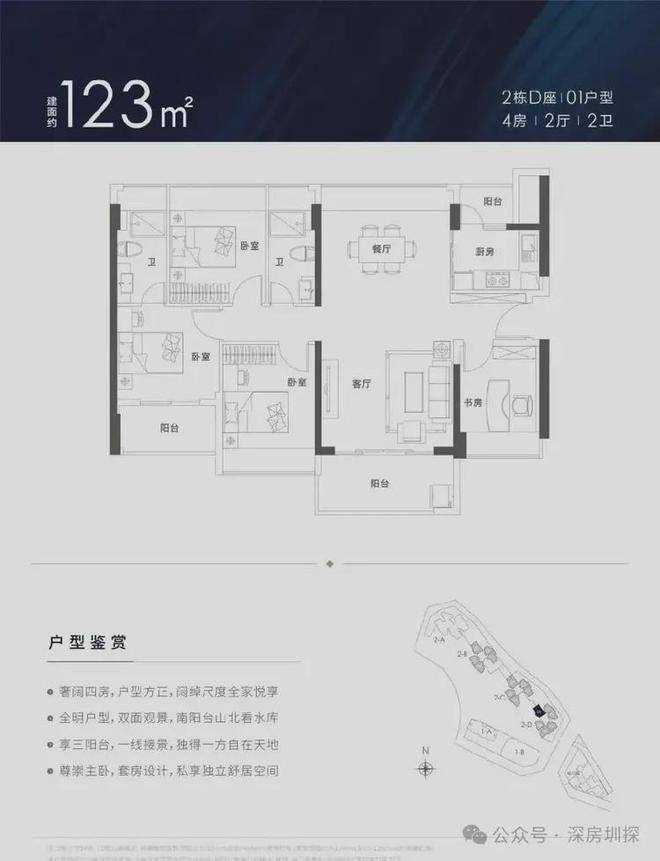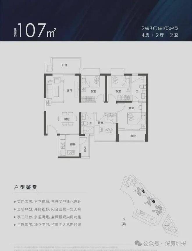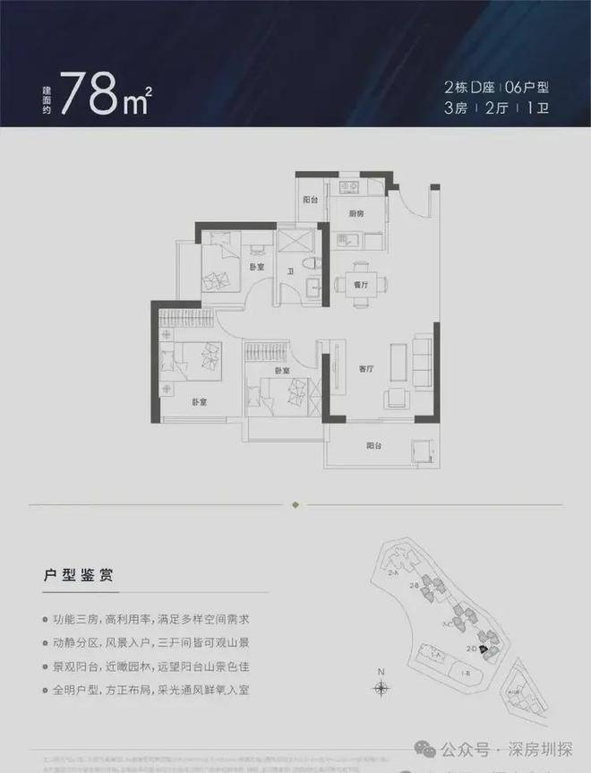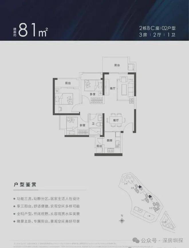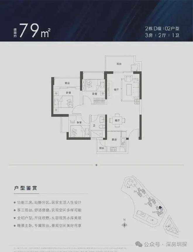 锦顺名居打造约78-129㎡3-4房,实用率超高,户型方正,南北通透。设计有主卧、客厅、厨房三阳台,拥有超大景观面,居家即可观九龙山、阳台山、茜坑水库、大浪水库等天然生态美景。