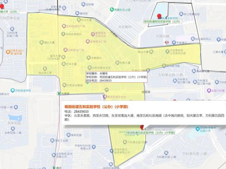 远洋天萃自带1所幼儿园,北侧地块规划有1所18班制幼儿园,小学学区划分在,科学高中五和实验学校,中学学区划分在坂田实验学校初中部,扬美实验学校初中部,深圳实验坂田校区初中部,科学高中五和实验学校初中部。