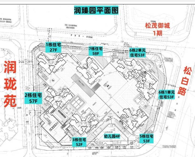润臻园(2-12地块)位于东明大道和松白路西北侧,规划建筑面积约29万㎡,由7栋高层住宅围合组成,目前正在建设中,预计年中入市。