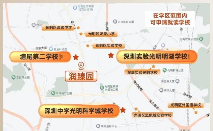 大城规划3所九年一贯制学校、其中一期学校深圳实验光明明湖学校(暂定名)建设中,项目3公里范围内涵盖深圳中学光明科学城学校、深圳市光明实验学校等。