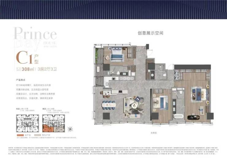全户型纵享环幕视野。项目打造主力建面约215-415㎡纯粹品质公寓共191席,顶层为建面约1270㎡公寓产品。