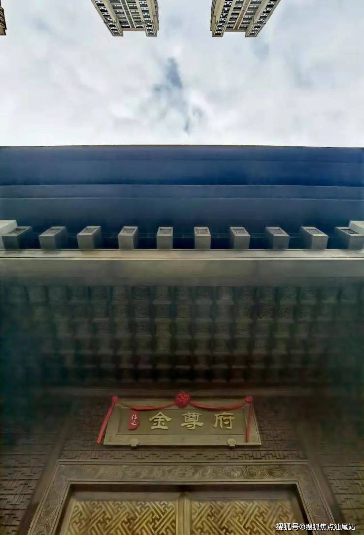 还有柚木打造的入户大门,以前是皇家专用,故宫大门用的就是这柚木;纯铜包边,汉白玉的门钹;门上雅致的纯铜匾额,亮晃晃三个大字“金尊府”;寓意十全十美的10枚门楣,地上铺的手工地雕……