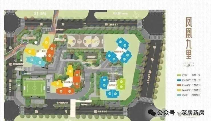 这次推出的是03地块,凤凰九里慧苑,总占地面积约1.41万㎡,总建筑面积约13.78万㎡,计容建筑面积约9.75万㎡,容积率6.92,绿化率40%,共由4栋32-48层住宅组成,其中1栋1/4单元住宅48层,1栋2单元住宅47层,1栋3单元住宅32层。