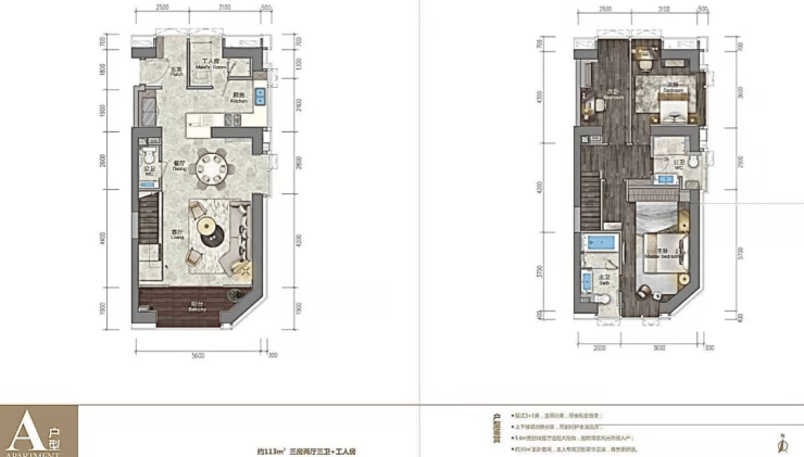 ★113㎡复式三房两厅三卫+工人房 南北通透三面景观,5.6米客厅与主卧开间,独具品位,尽享奢阔。