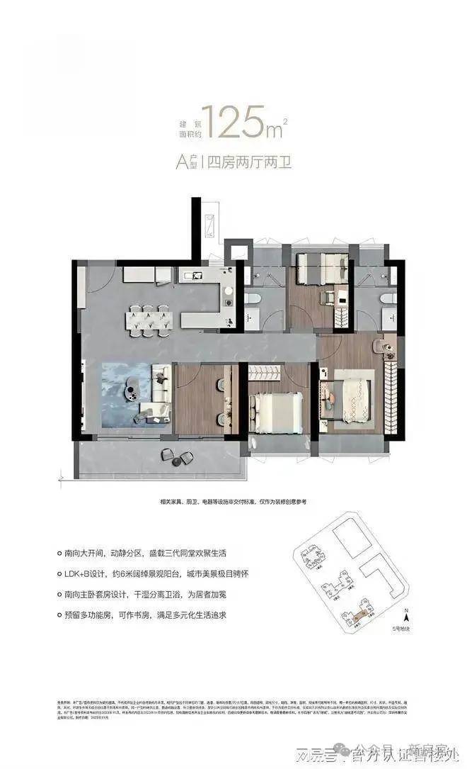 四房117-125LDK+B一体化,双卫670万起南向全明设计,宽景阳台