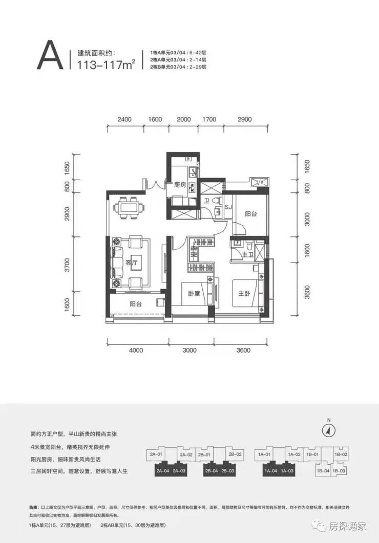 【产品面积段】112-115平3房2卫 、239平4+1房3卫