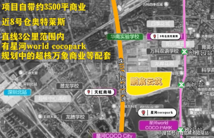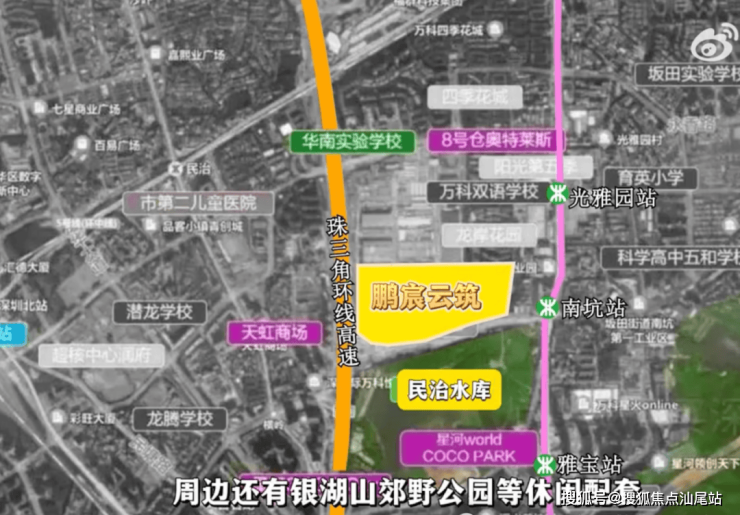 区位:项目位于位于龙华民治街道梅观大道东侧,民治水库旁,挨着华南国际物流中心。属于北站枢纽城市功能节点,未来发展十分亮眼。项目距离地铁10号线南坑站约600米,往南通过两个站即可进入福田区(孖岭站),换乘9号线方便前往蔡屋围、车公庙、科技园等核心就业板块。
