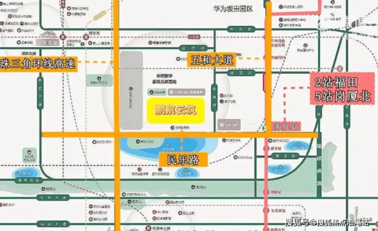 交通:距离地铁10号线南坑站C出口步行约600米,2站福田,4站深圳北,5站岗厦北,约8km(直线距离)直达福田CBD,主干道民乐路、全互通横岭立交即将开通,轻松畅达城芯各区腹地。