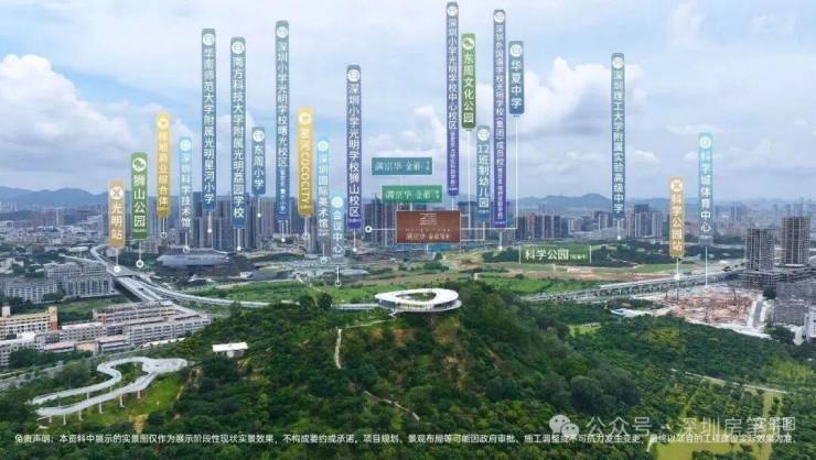 根据2025年光明区教育局最新的学区划分,项目的小学学区覆盖华南师范大学附属光明星河小学、深圳小学光明曙光学校、修远小学、南科大荔园学校、中科实验教育集团光明楼村第二学校、深圳市教育科学研究院实验学校、中山大学深圳附属学校、楼村小学等多所优质学校。初中学区同样涵盖了华夏中学、深圳实验光明学校、光明高级中学、科韵学校等热门学校。