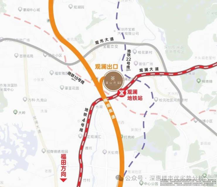 交通配套:项目毗邻主干道观澜大道,周边还有珠三角环线高速,最近的4号地铁线“长湖站”距离约1公里,“观澜站”距离约1.3公里,8站到红山,9站到深圳北站,12站到福田上梅林。