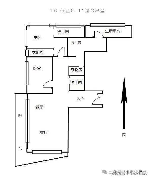 T6栋低区6-11层的240平C户型,为深圳湾一号入门户型,由2个套房+2厅+厨房组成。户型不方正,得房率低。客厅出L字型双阳台,视野开阔,主卧出朝东阳台,采光和视野都比较好,此外还配有生活阳台,可以观赏东面海景。不足之处在于阳台朝西和朝北,采光和景观都比较一般。主卧和厨房隔得太近,且未实现主佣分区,动静分区不明显。