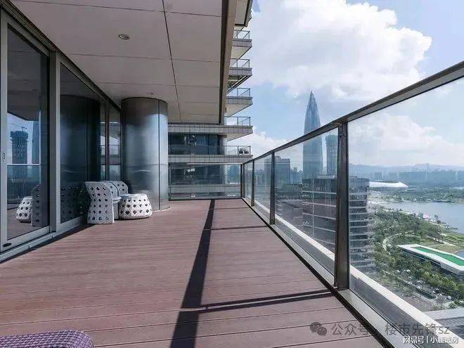 伫立于客厅的宽阔阳台上,后海总部基地和深圳湾及海天一线景观尽收眼底。