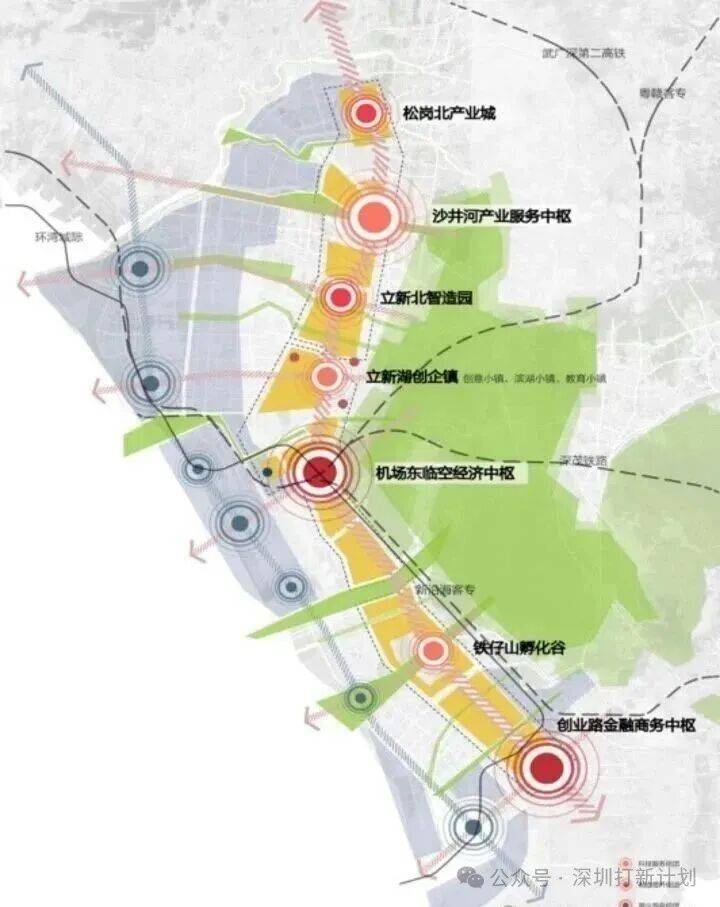 北部连接东莞经济重镇长安,南边通往深圳高新技术产业园,前海自贸区,历来是宝安境内的交通要道,经济命脉。大型产业园集聚区十余个,品牌产业园区超40个,直接支撑起宝安产业大区的中部黄金发展