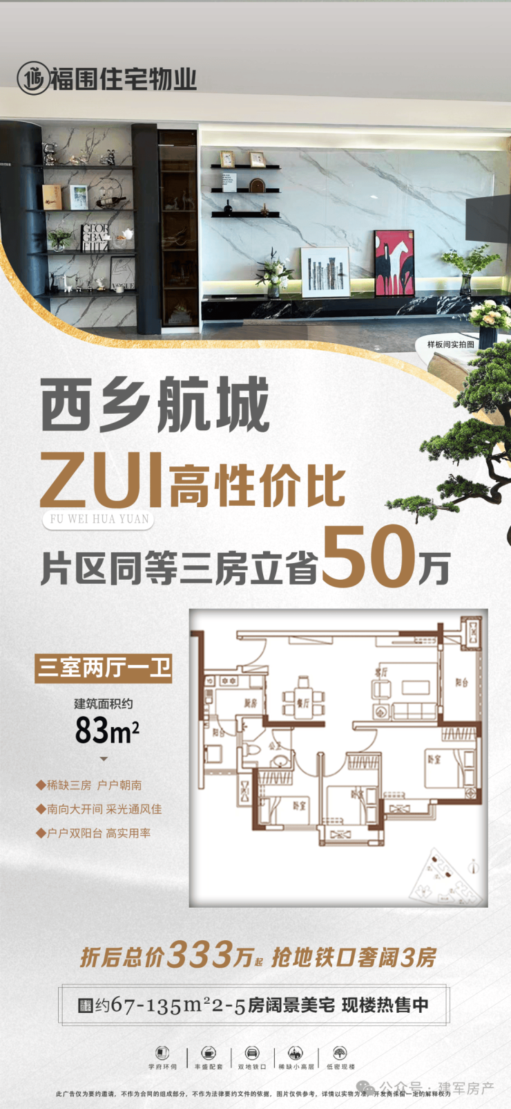 本宣传资料不构成邀约邀请,对周边、政府规划、商业配套、教育资源、投资前景等数据和图文仅为提供相关信息,该信息以政府最终批文为准,开发商不对此作任何承诺。买卖双方的权利义务以双方签订的买卖合同约定及附件、实际交付为准,本公司保留对宣传资料修改的权利,敬请留意最新资料。