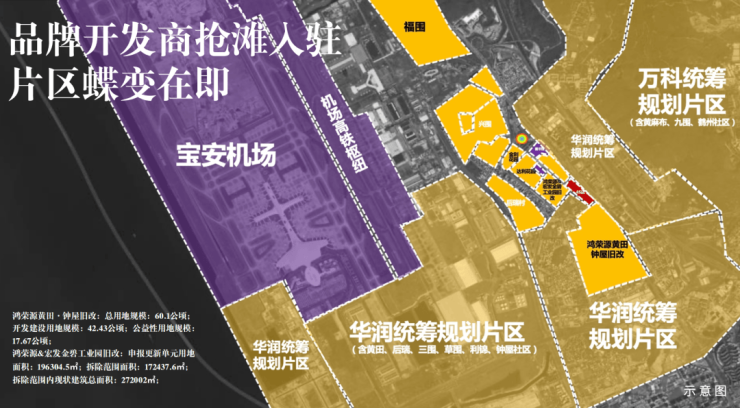 华润(草围旧村及南片区城市更新单元)、鸿荣源(钟屋黄田旧村更新项目)、宏发(黄田金碧片区城市更新旧改项目)等房企巨头均已抢滩入驻,助力片区蝶变,大体量城市更新革新片区价值,未来将不断丰富项目周边的文体、商业配套,进一步提升片区的生活品质。
