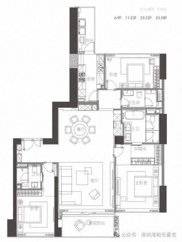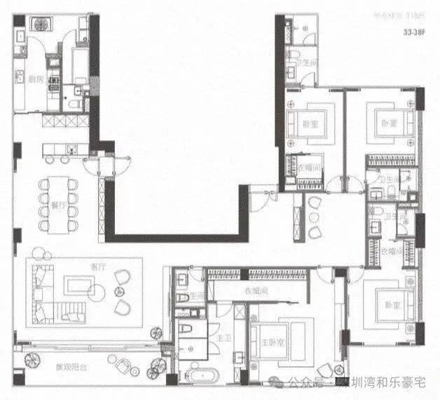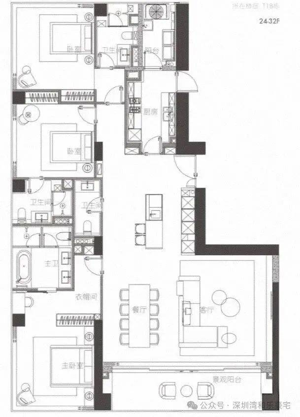 商办:380㎡4+1房5卫,东南端头位,客厅朝南,主卧东南2房朝东,主卧朝南朝南看海 东南看海 看深圳湾大桥 城市景观