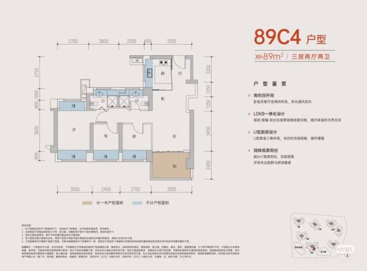 ④给空间以从容:约89-128㎡ 三至四房新规户型,高赠送率+高使用率
