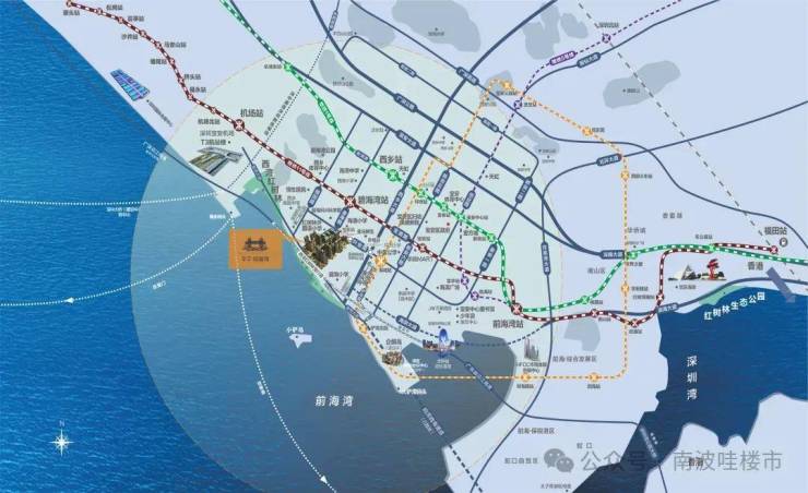 [陆]周边有沿江高速、广深高速、西乡大道/宝安大道/107国道,可快速串联前海、南山、福田,通达广州、香港。
