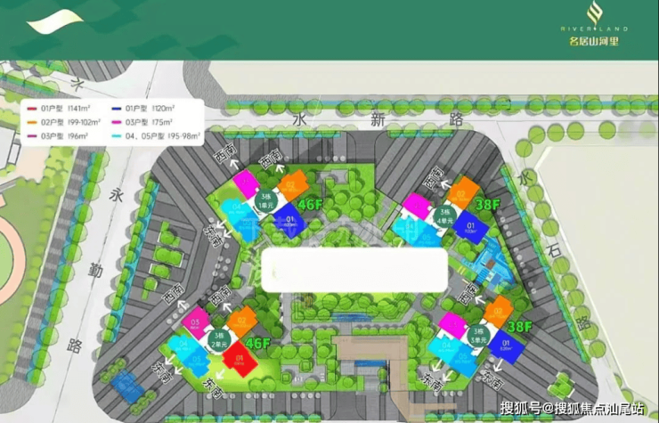 首推的01地块(一期):总占地面积约1.56万㎡,总建筑面积约11.7万㎡,计容建筑面积约9.05万㎡,容积率5.83,绿化率40%,共由4栋总高38-46F的住宅组成,其中3栋1/2单元住宅46F,3栋3/4单元住宅38F。
