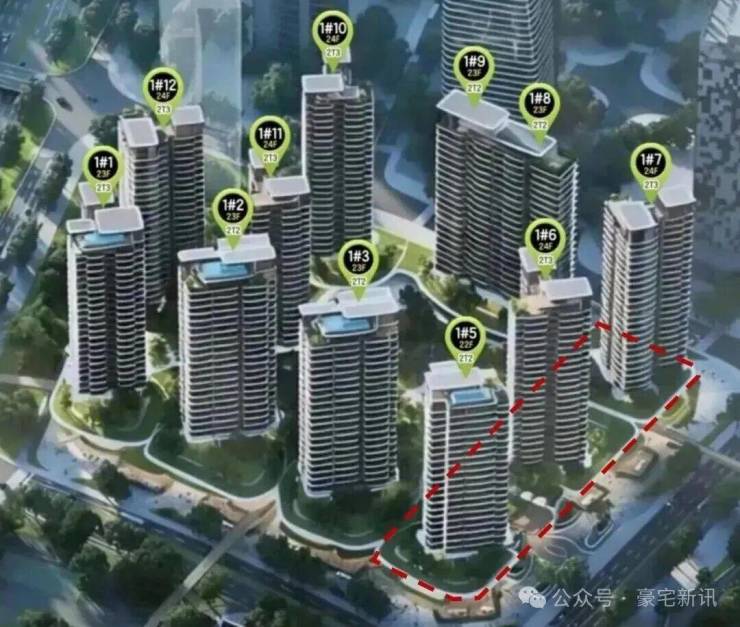据传先卖5/6/7栋,179套建面约143-168-188-260㎡,5栋顶楼还有一套488㎡大平层(带私人泳池,可定制化装修),得房率近100%,大概2027年底精装交付!