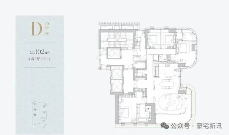 1D栋(1栋四单元)-45层:均为3梯2户,约305㎡,一层两户。