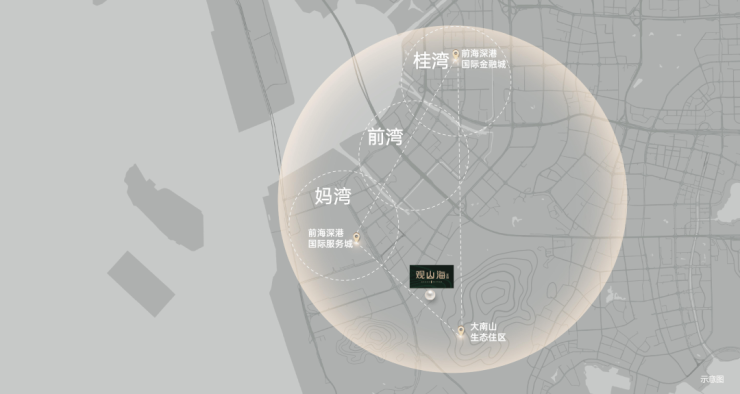 观山海家园踞守前海黄金三角核芯地带,拥有难以复制的战略区位价值。约650m举步即达约2.9万㎡妈湾理想城市综合体,都会繁华触手可及;约450m轻松抵达荔湾地铁站,畅达全城脉络;同时,一路之隔36班小学(规划中)、深大附中、南山实验教育集团荔湾小学等优质教育资源环伺在侧,为孩子成长奠定坚实基础,成就繁华与静谧兼得的理想人居图景。免责声明:上述距离为直线距离,数据来源于百度地图;学区划分与入学政策由教育部门根据当年区域生源状况动态调整,与本项目和学校物理距离无直接关系,开发商不作任何承诺。