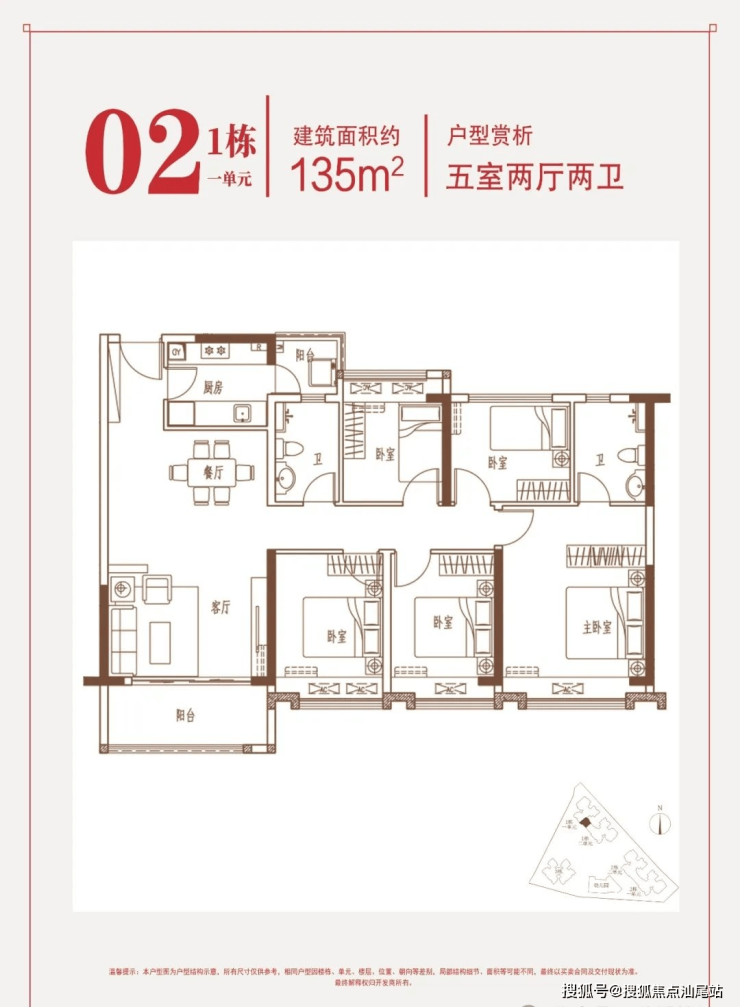 - 135㎡五房两卫:适合多孩家庭,空间尺度阔绰。