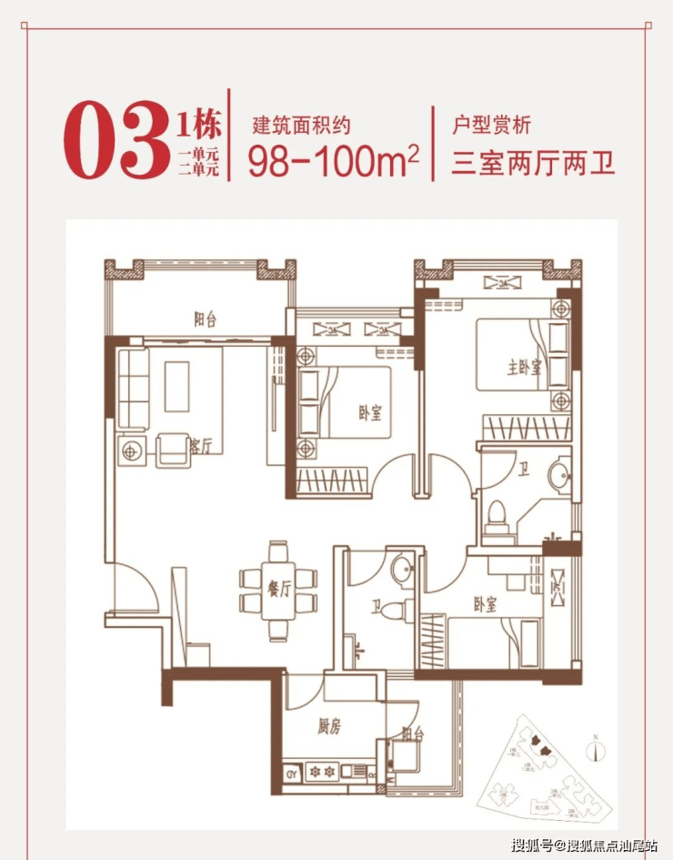 - 90-103㎡三房两卫:主卧增设独立卫生间,提升私密性。