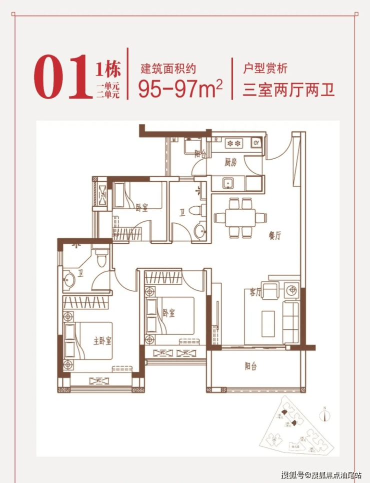 - 82-83㎡三房一卫:动静分区,双阳台设计(景观阳台+生活阳台),实用率高。