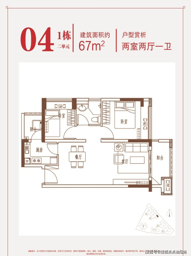 - 约67㎡两房:东南朝向,片区内唯一在售2房。