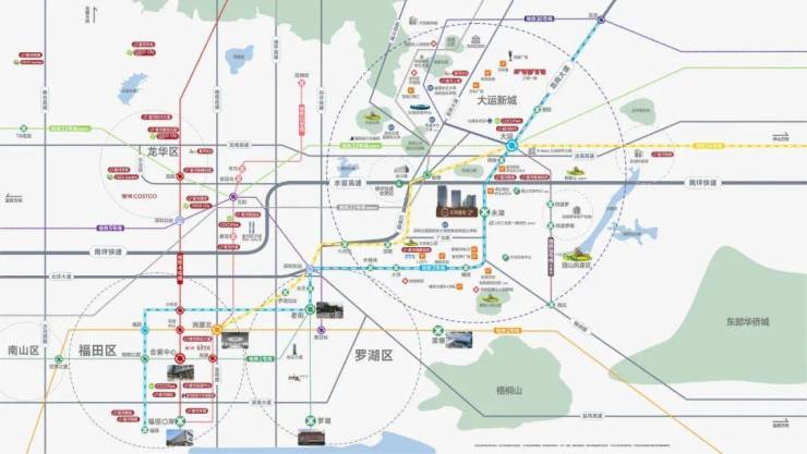 3号线:项目直连地铁3号线永湖站,两站即达大运,8站直达罗湖;