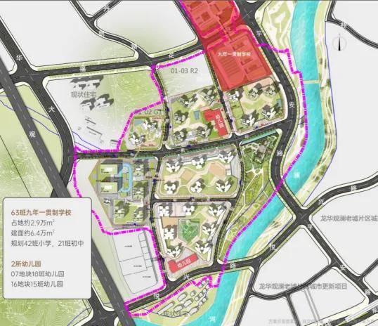 在教育方面,项目周边多所学校环绕,本项目规划有2所幼儿园、1所63班九年一贯制学校。周边汇聚观澜中心学校(九年一贯制)、观澜第二中学、龙华高级中学观澜校区。(学校以教育局划片为准)