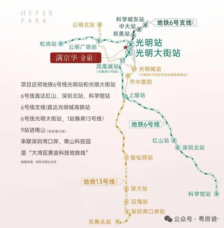 交通配套:项目距6号线“光明站”约800米,步行11分钟可达。2站到凤凰城站换乘13号线,4站至光明城站接驳高铁站与6号线,6站抵宝安上屋,11站达南山西丽留仙洞,14站到南山高新园,18站至后海。此外,龙大、南光、深圳外环高速环伺,快速串联全城。