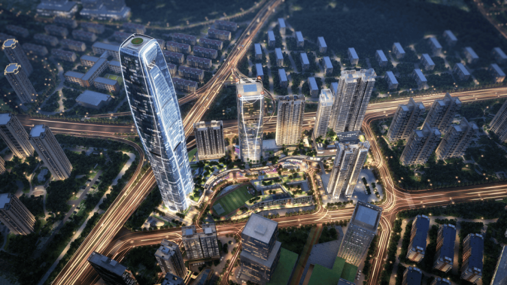 约63万㎡城建云投创新金融总部基地,以约380m地标云投大厦,勾绘城市天际风景线