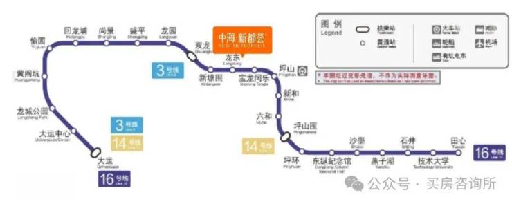 咫尺商圈,项目自带约1.2万㎡集萃商业,近邻约2.2万㎡中信龙盛广场,出门即达16号线地铁商业下沉广场⑨(规划中),举步即达琳琅之境,地铁链接龙岗中心城及大运商圈,可肆意享受快意繁华
