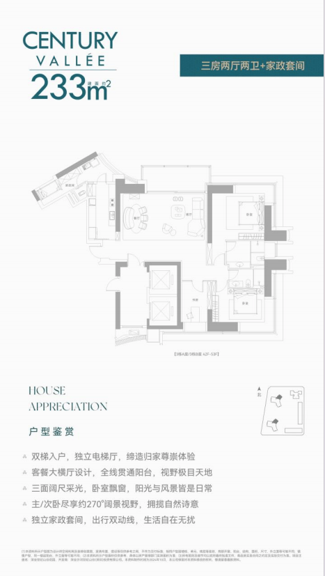 项目简介:总建筑面积约39万㎡,涵盖天际住宅、高端公寓、下沉式商业街等多种业态为一体,最新推出二期3栋C座建面约131-262㎡天幕公馆、C1户型——建面约131㎡2室2厅2阳台。