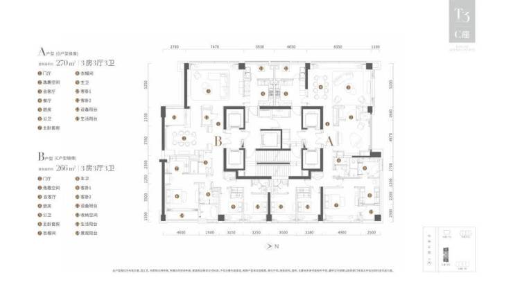 A/D户型:313m²三房三厅三卫,南北通透(卧室全南向)