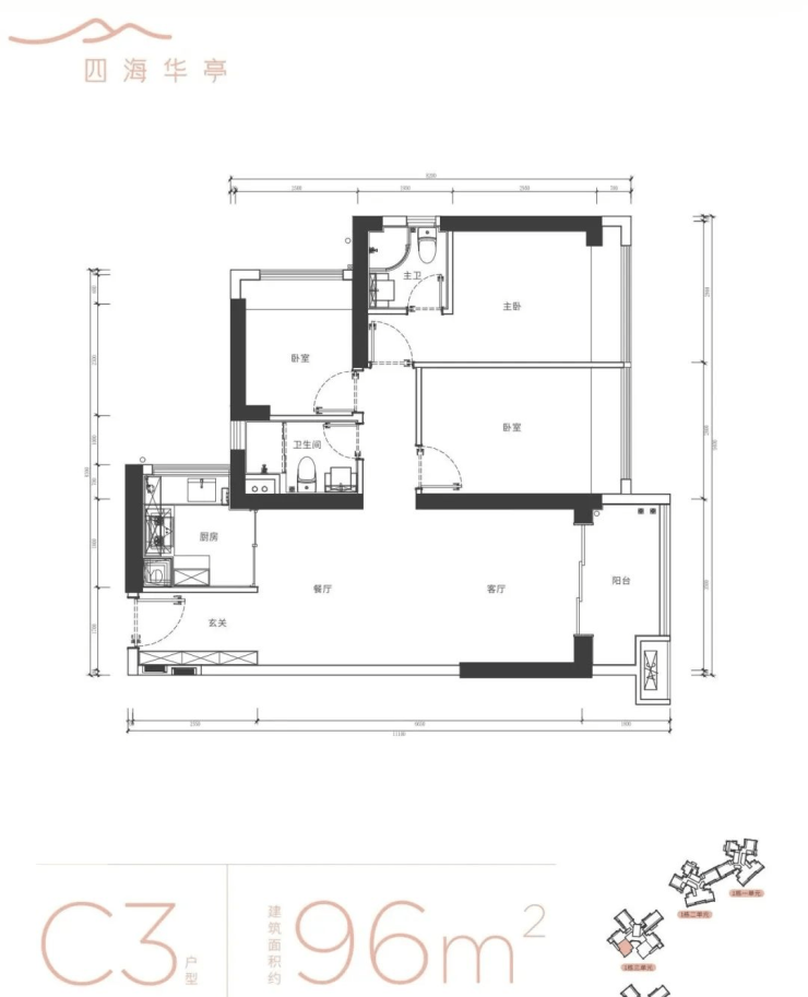 面积:87㎡3房1卫,96㎡3房2卫,126-121㎡4房2卫