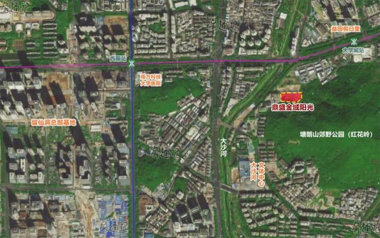 鼎盛金域阳光位于大沙河东侧,珠光北路和留仙大道交汇处的南侧。