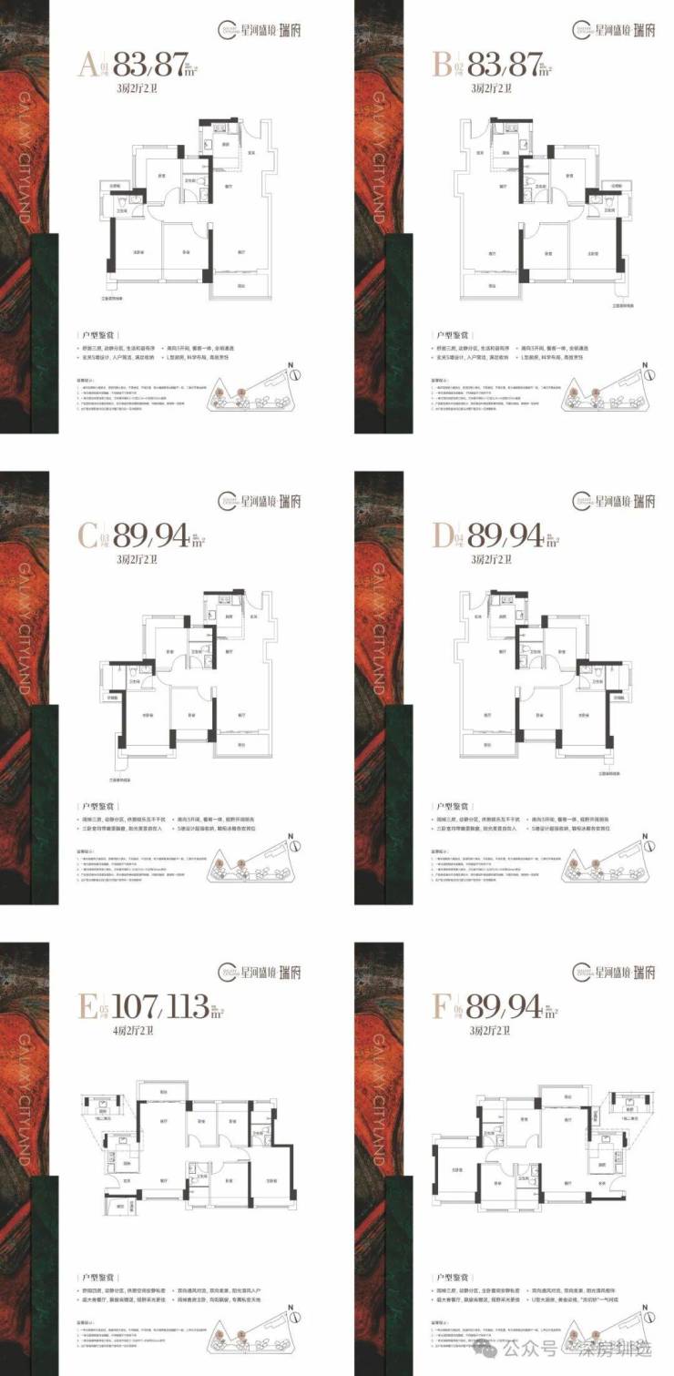 住宅约87-89-94㎡3房2厅2卫、107-113㎡4房2厅2卫精装住宅