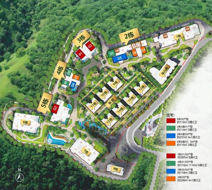 该项目小区一共8栋,其中包含5栋高层住宅,2栋公寓,中间7栋联排别墅,以及独立在花园外的保障房和1所幼儿园,容积率5.78,包含超高层住宅、超高层公寓、多层住宅、高层保障房及公寓等业态。