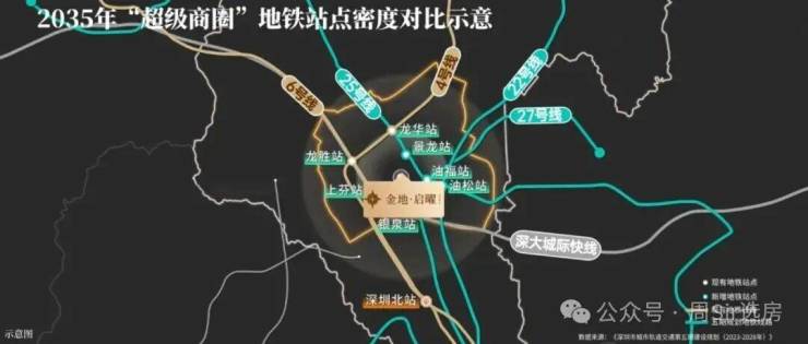 金地启曜府项目距离壹城中心商业仅一路之隔,到达4/25号线龙华站距离仅400米,未来楼盘周边也将规划两所九年制公办学校。